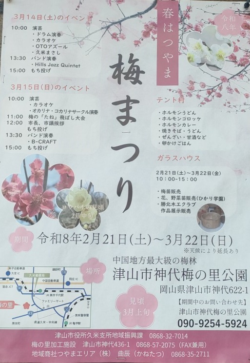 - 場所:岡山県津山市神代622-1(梅の里公園)